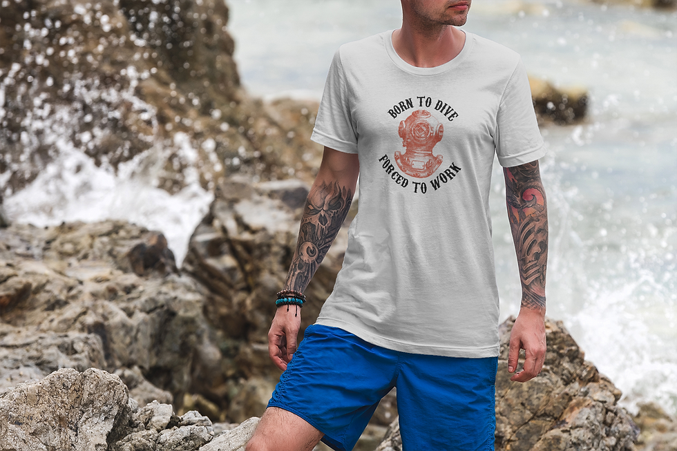 SCUBA FUN BORN TO DIVE FORCED TO WORK TEE SHIRT