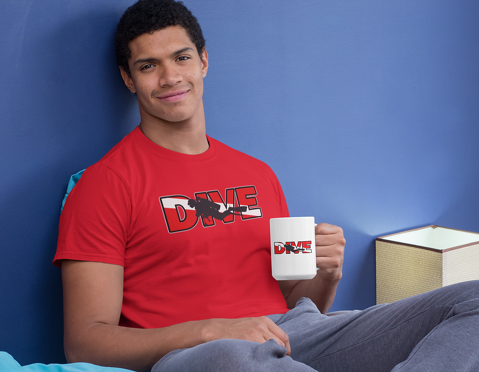 SCUBA FUN "DIVE WITH DIVER SILHOUETTE" T-SHIRT & MUG SET